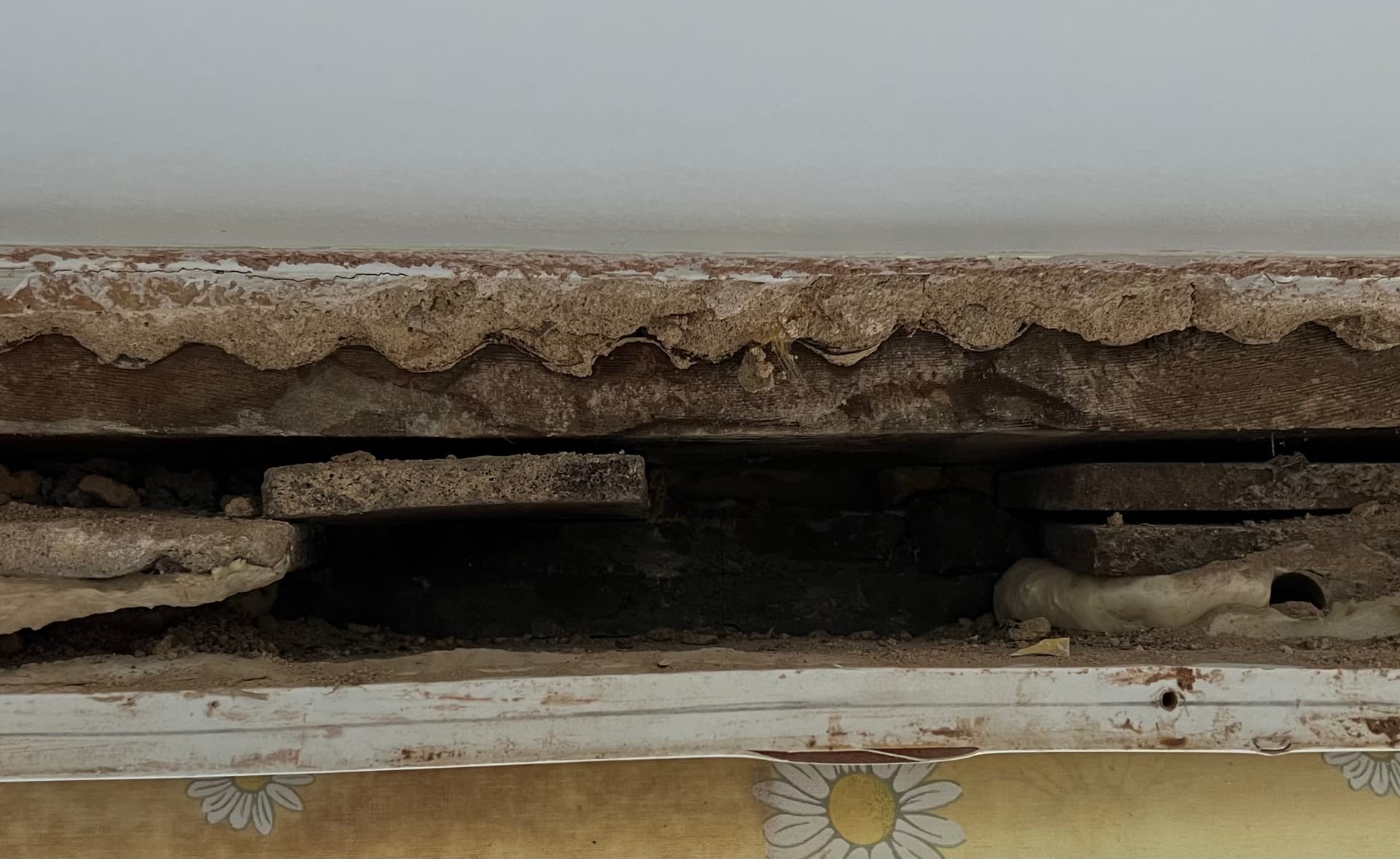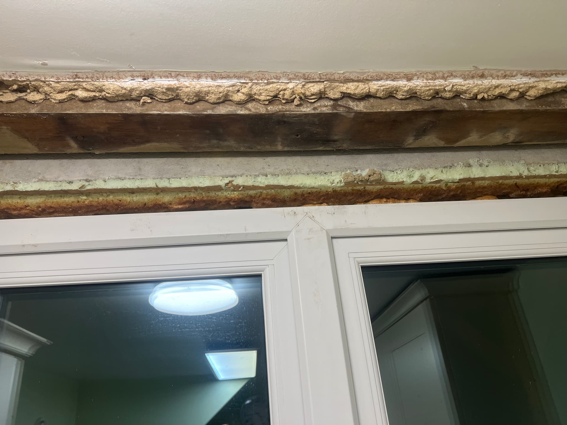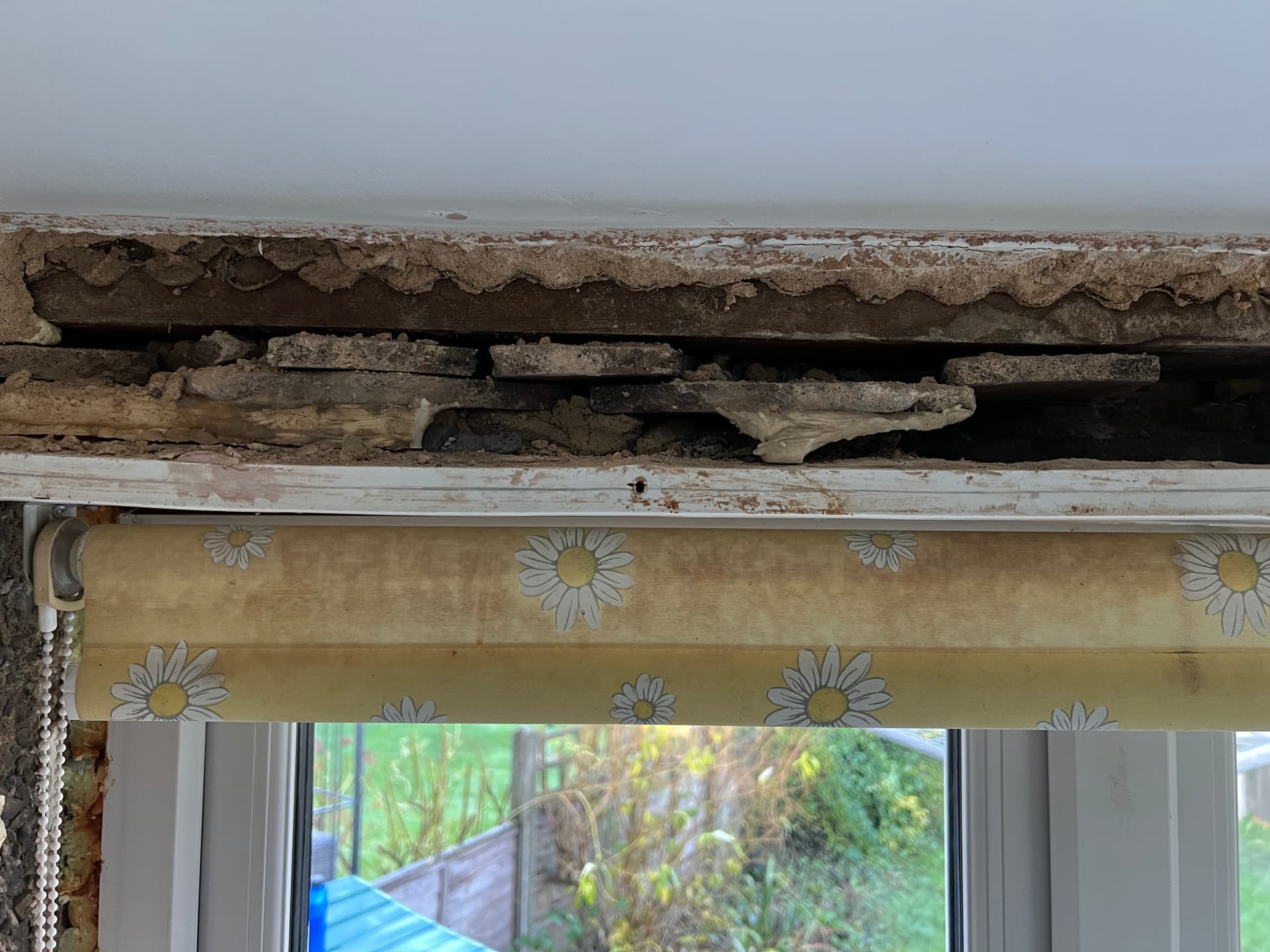 As you can see there are two sources of leakage along the top. There are gaps in the foam sealant and another between the two lintels.
