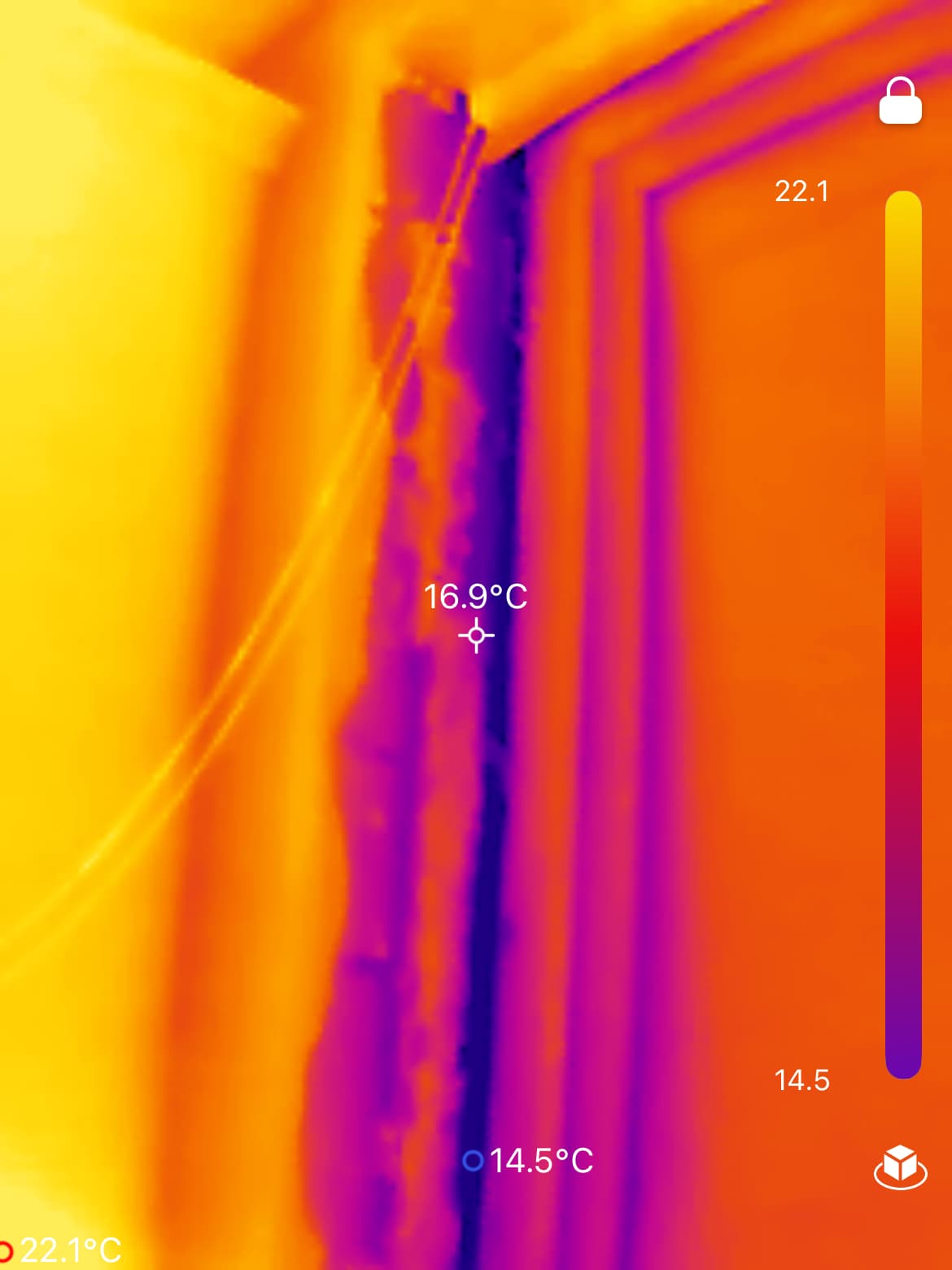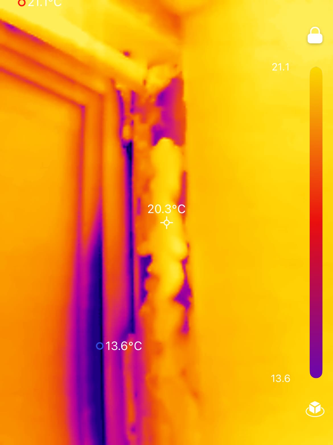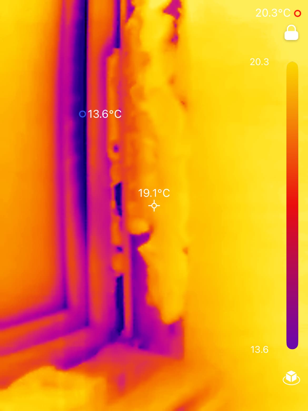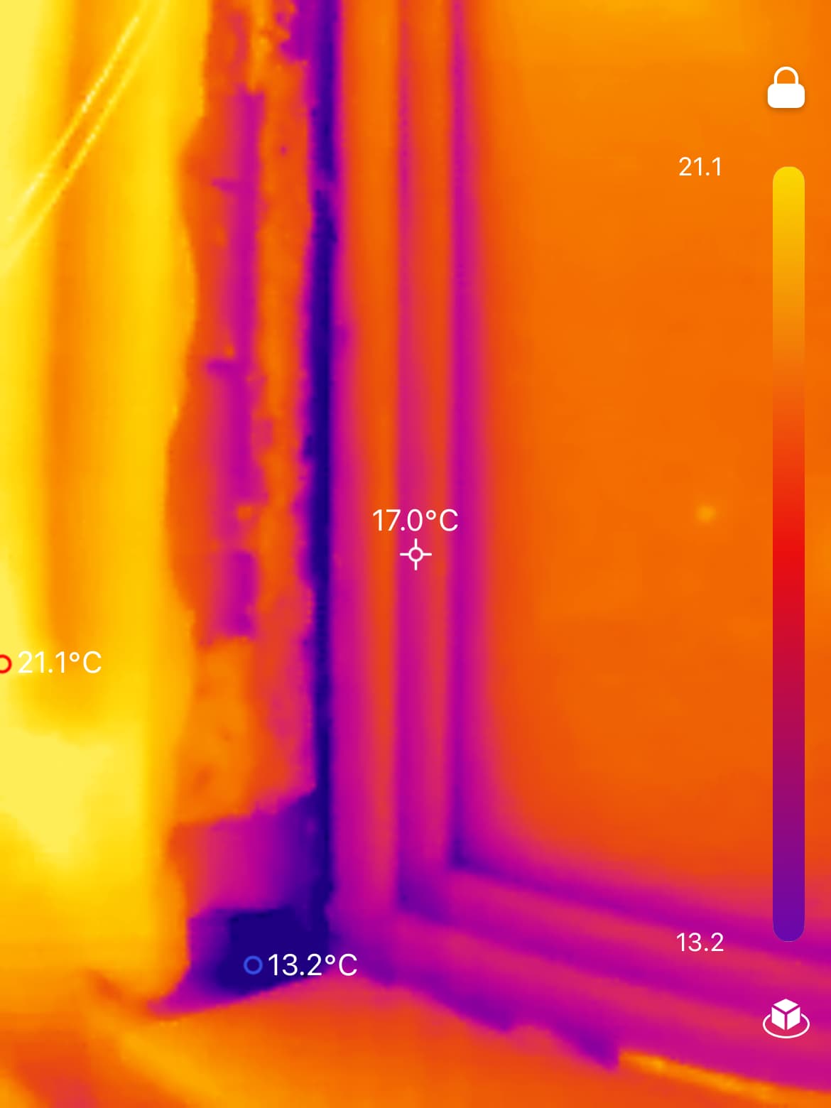 This is the thermal image of the top of my window this evening. Not particularly cold out but a good wind to show leakage.