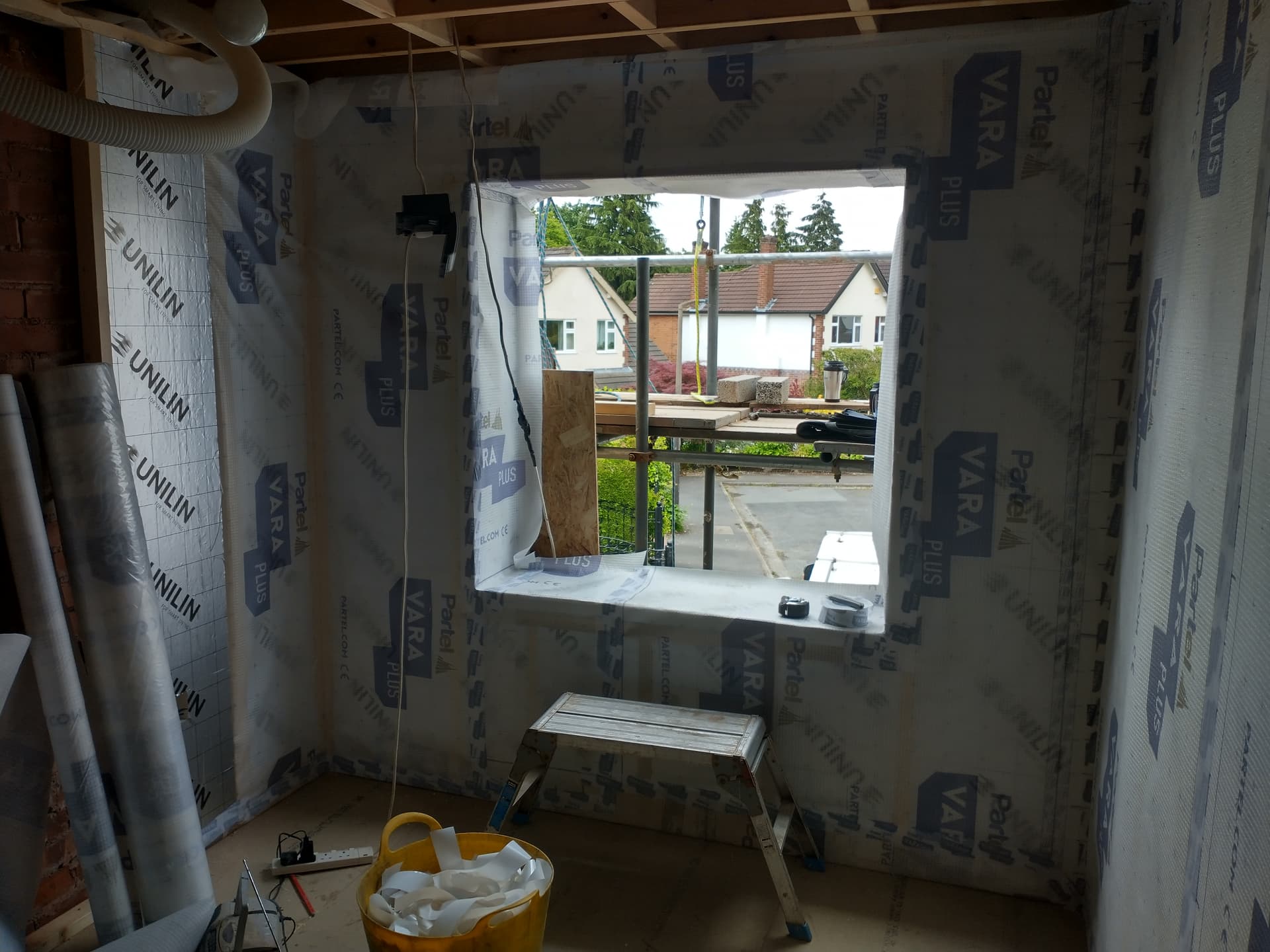 Which was then protected with OSB boarding. The plan was to seal the spare membrane to the window.