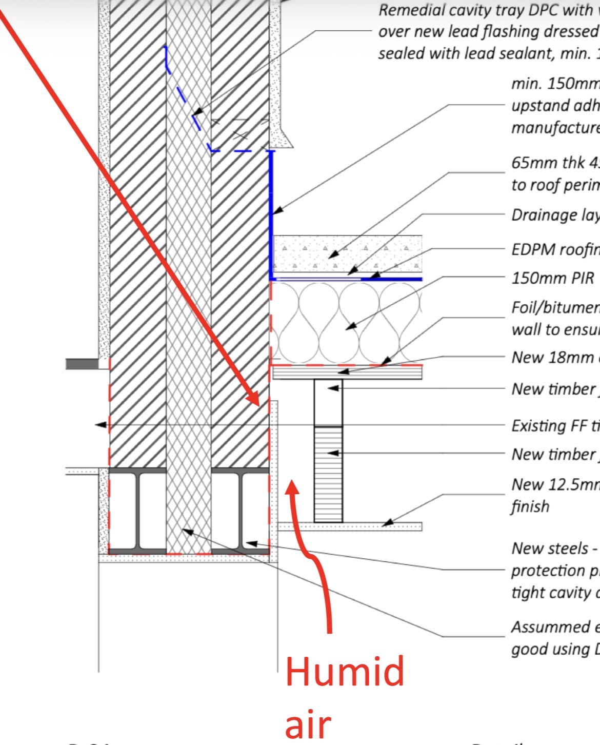 My builder is prepared to unscrew the joist as the OSB on top is not yet fixed. He could perhaps also move the joist a little further away from the wall to actually fit some PIR, but I really need to pin down what I need to ensure I don’t leave a moisture trap there.